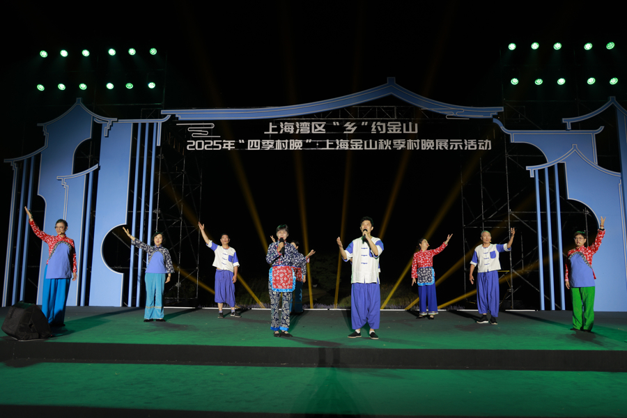 大地为舞台,星空为幕布,10月15日晚,2025年“四季村晚”·上海金山秋季村晚示范展示活动在朱泾镇待泾村花开海上生态园精彩上演。热情洋溢的舞蹈、原生态的田歌、创意十足的阿卡贝拉……一系列富有乡土气息与现代韵味的节目,展现出金山人民昂扬的精神风貌,绘就出一幅乡村振兴的生动图景。